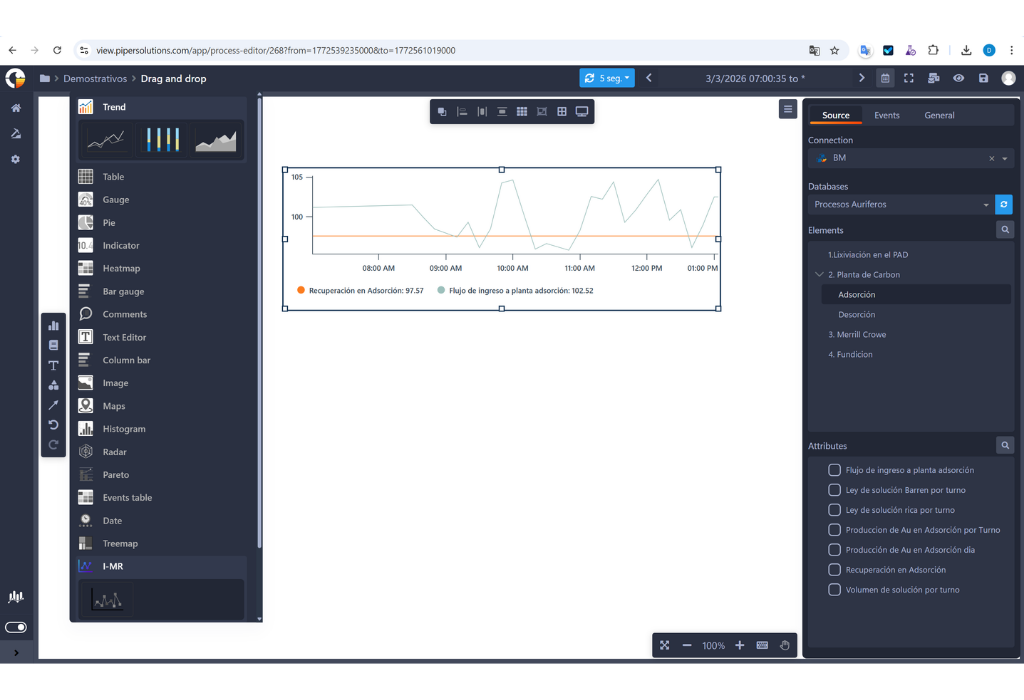 - Versatile interface that allows the integration of multiple visual elements such as graphs, tables, and figures, faithfully recreating the operation of the industrial process for more intuitive and effective interpretation