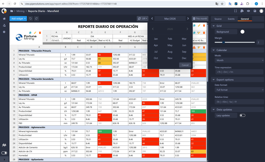 - Flexibility in data export, allowing complete dashboards to be converted to PDF format for executive reports and to Excel for detailed analysis